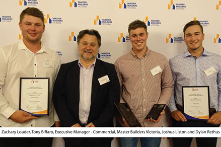 The other two winners were Dylan Rethus, a carpentry apprentice from Horsham (Apprentice of the Year) and carpenter Zachery Louder from Ararat (Employer-nominated Award).