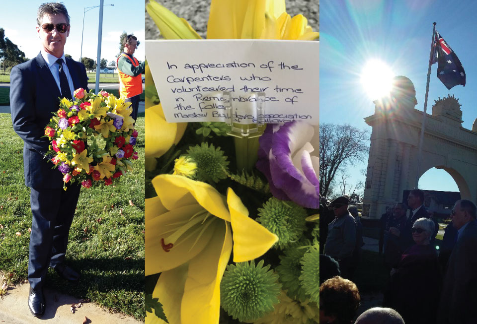 The members of the Arch of Victory/Avenue of Honour Committee felt that it would be fitting that the Ballarat Brach of the MBA attend the Commermorative Tree Planting on 4th June. A wreath was layed as a tribute to the carpenters of the day who assisted in the planting the historic Avenue of Honour.