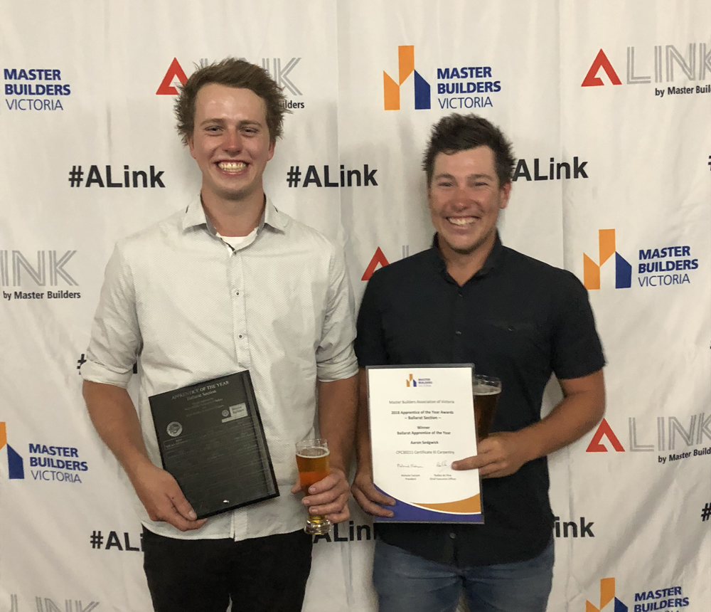 • Aaron Sedgwick, Master Builders Ballarat Section Apprentice of the Year.